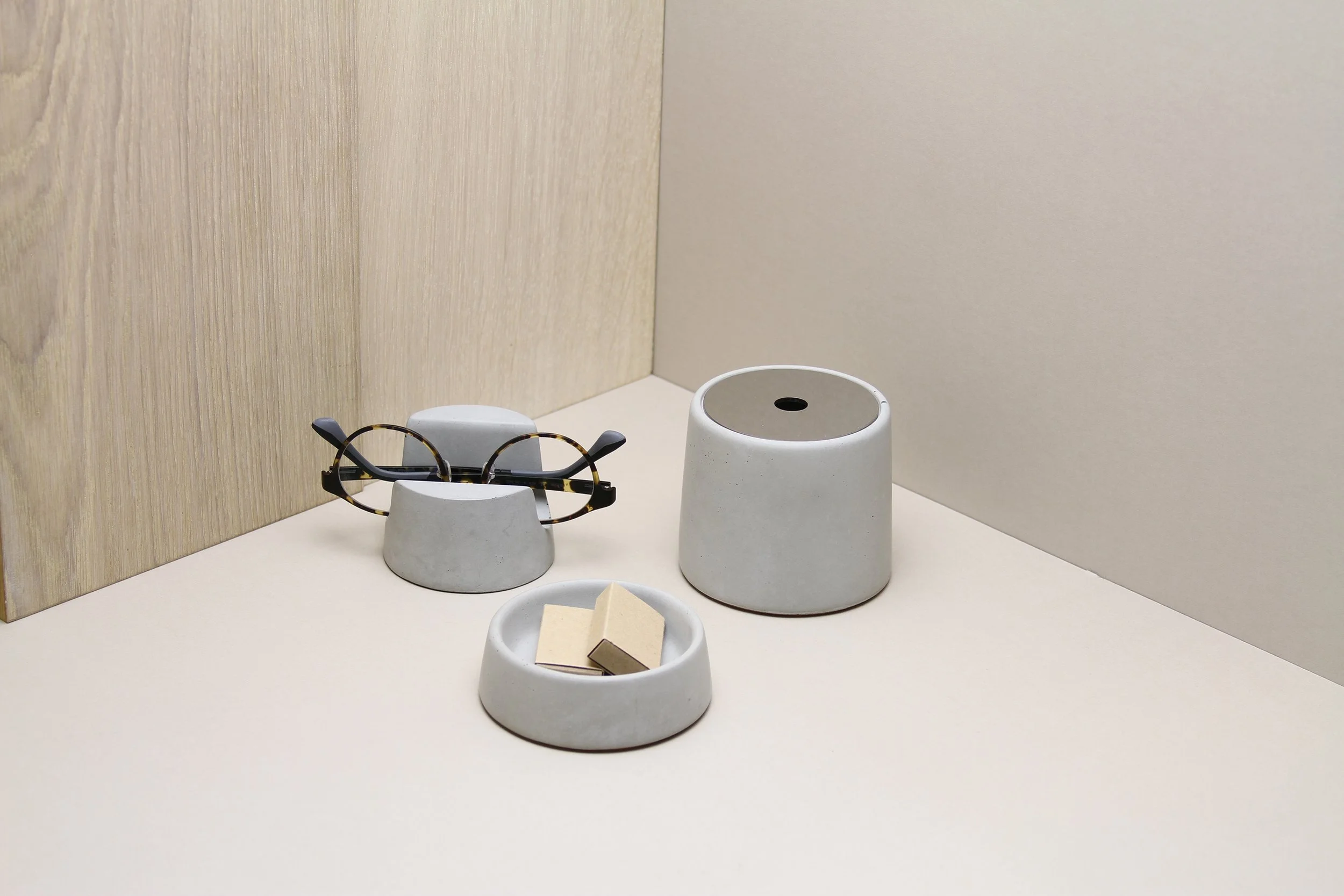 Barbican Concrete Set Tableware 28 May Written By G P Named after the architects of the Barbican centre in London, the set of desk accessories in cast concrete, brass & leather were commissioned to be sold in the Barbican gift shop. Tableware G P